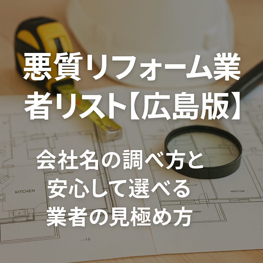 「リフォームを考えているけど、どの業者に頼めばいいのか不安…」「悪質なリフォーム業者にあたってしまったらどうしよう…」 そんな不安から、「悪質リフォーム業者リスト 広島」と検索する方が増えています。実際、広島県内でも「工事の質が悪い」「費用...