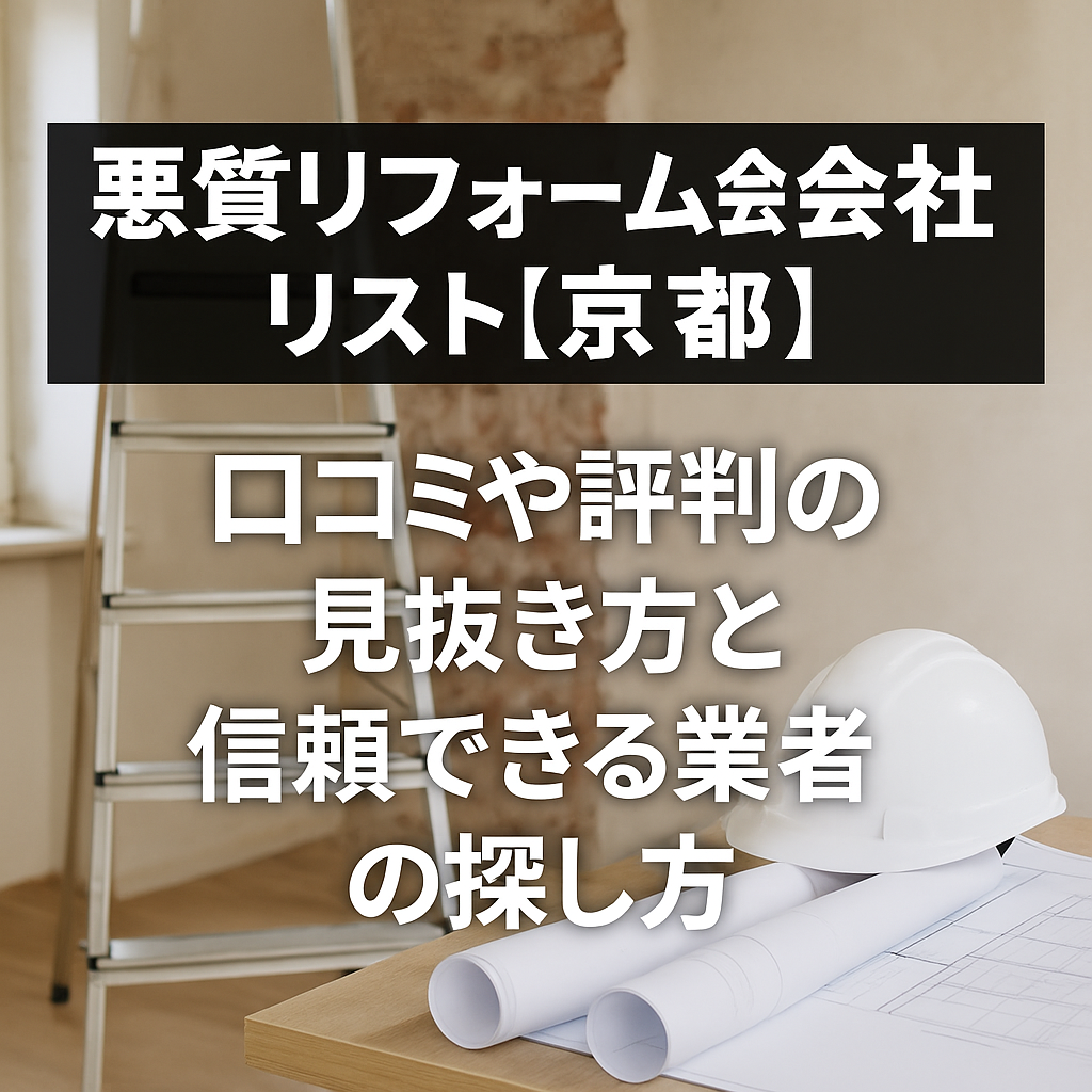 近年、「悪質リフォーム会社 京都」などの検索数が増えているのをご存じでしょうか?リフォームを検討している人にとって、信頼できる業者選びは成功のカギを握ります。しかし実際には、強引な営業、ずさんな施工、契約トラブルなど、「悪質」とされる業者... -