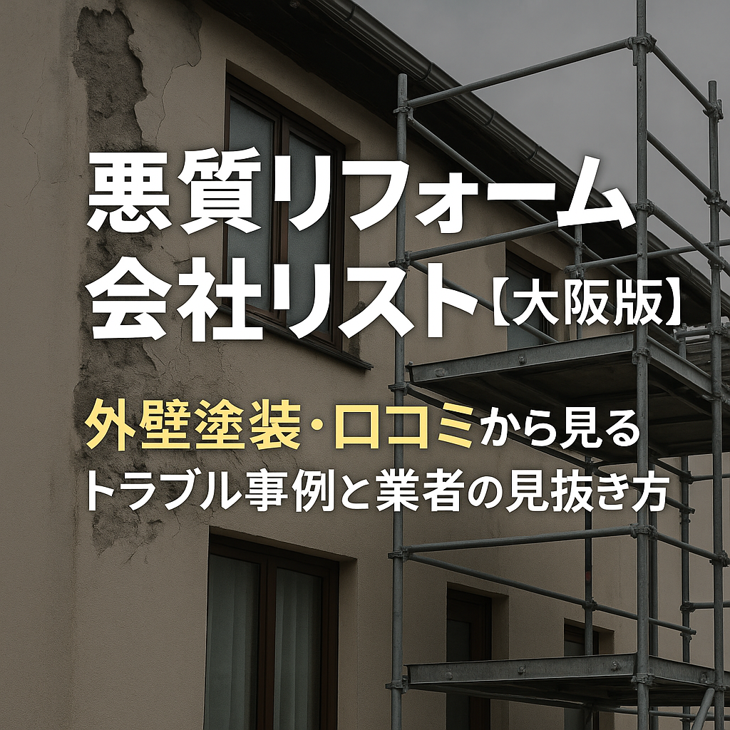 リフォームを検討している方にとって、「信頼できる業者選び」は最も重要なポイントの一つです。ところが、大阪エリアでは悪質なリフォーム業者とのトラブルが後を絶たず、「騙された」「高額請求された」「工事が雑だった」などの被害相談が消費生活セン... -