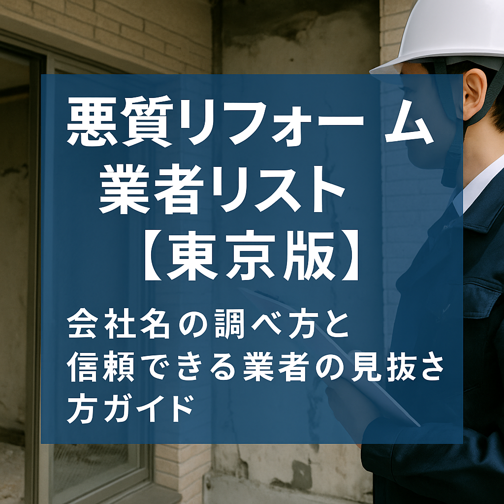 「リフォームを考えているけれど、どの業者に頼めば安心なのか分からない…」そんな不安を抱えながら「悪質リフォーム業者リスト 東京」と検索する方は少なくありません。 実際、東京では業者数が多い分、リフォームに関するトラブルも全国的に見て多く発生... -